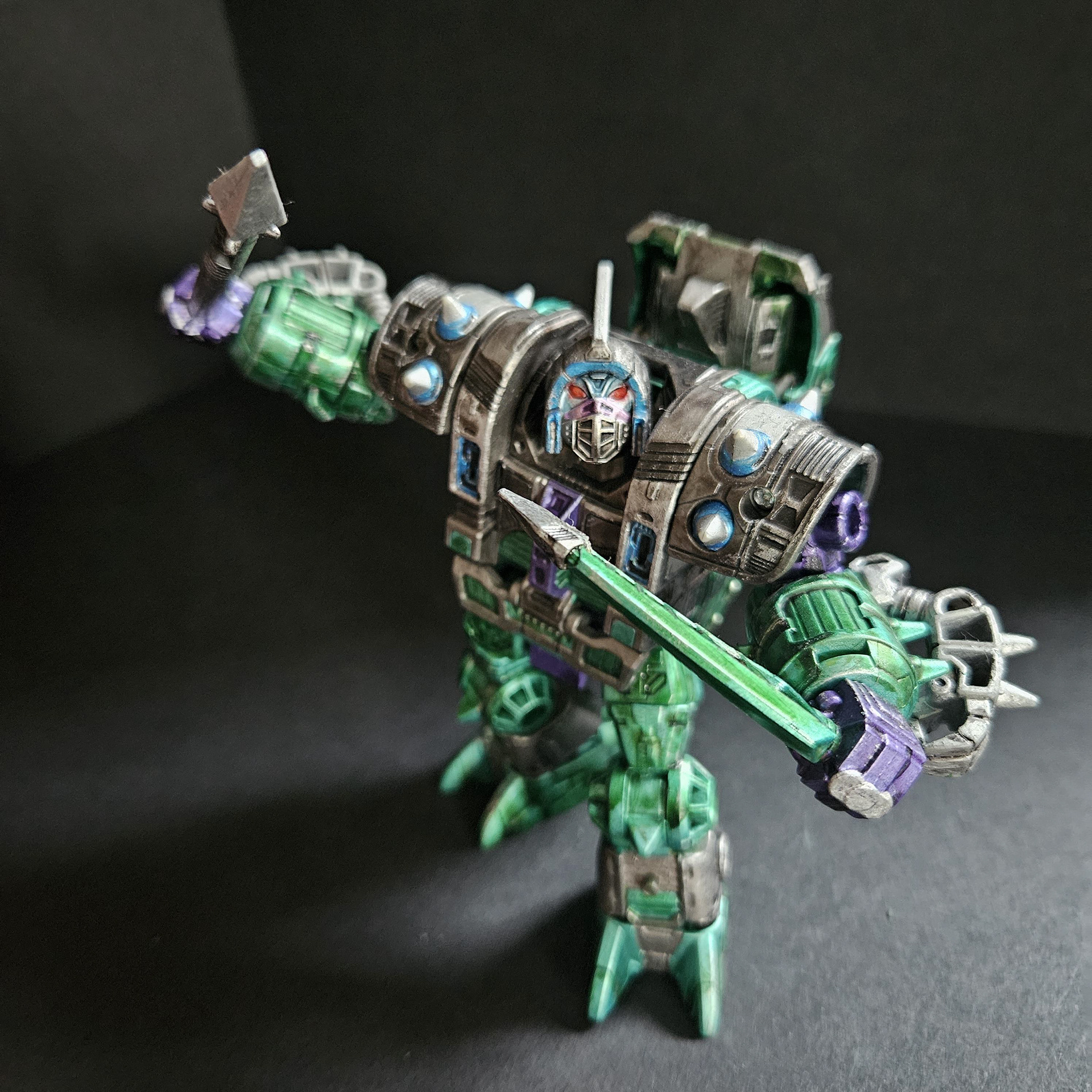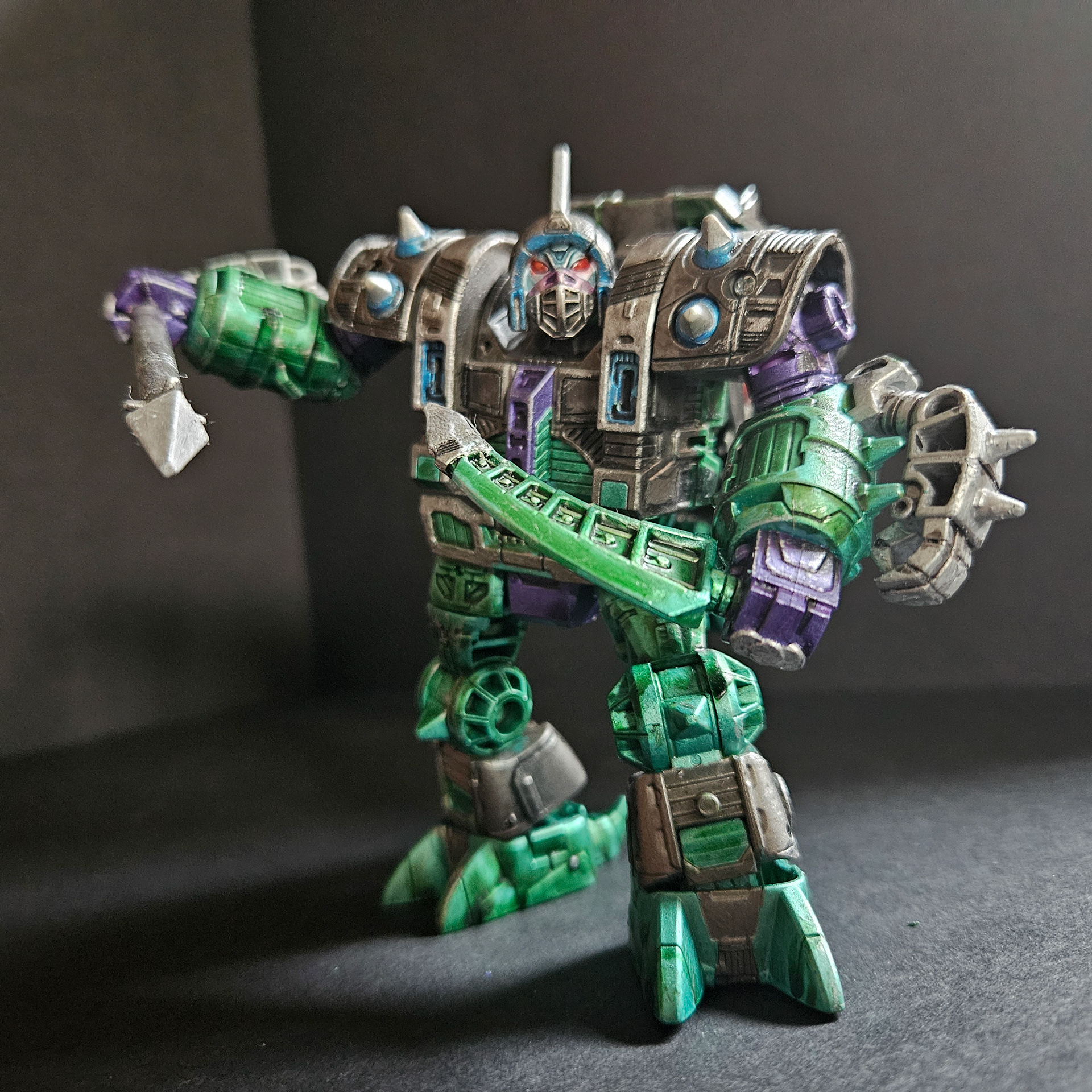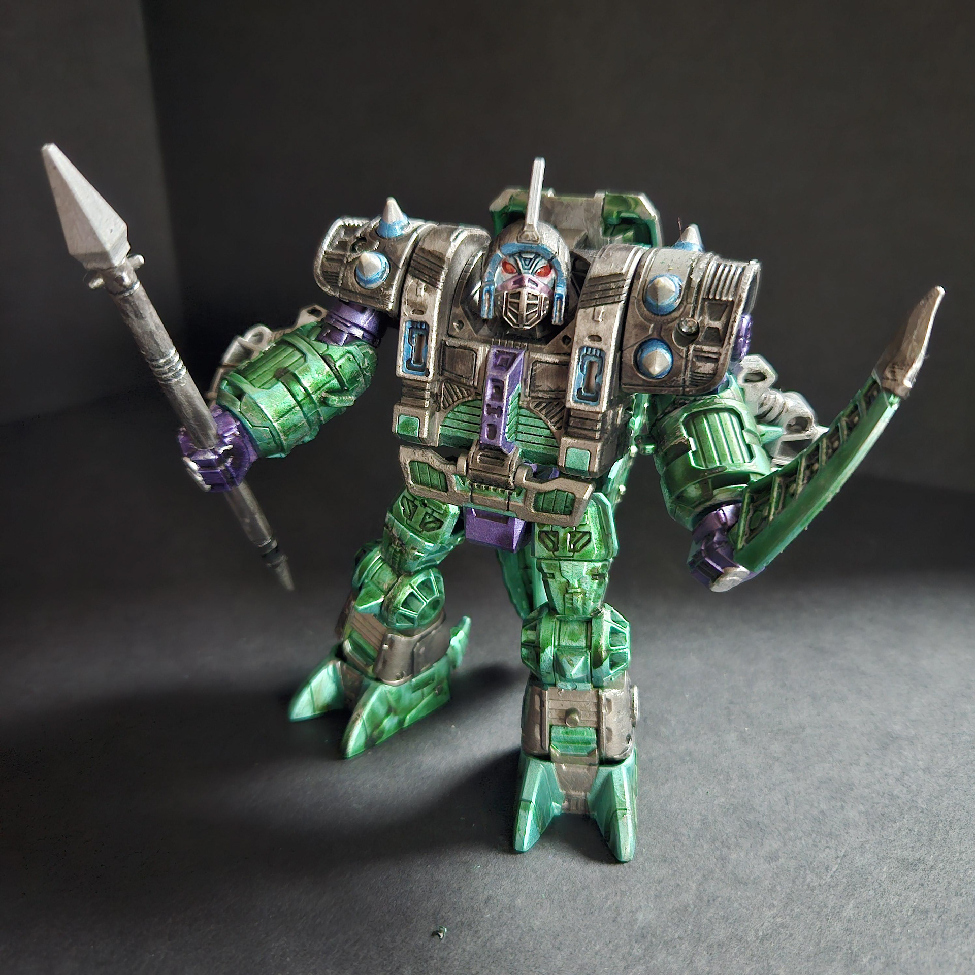 masters, the Quintesson Judges. They exceeded all expectations for what were to be simple guard drones. Now they are the personal body guards and executioners for their masters. Unlike their smaller Sharkticon predecessors, they have earned a reputation of terror that had taken a millennia for the Sharkticons to gain. Not as intelligent as the Sharkticons, the Allicons are easy to control and command. The few drones that have shown slightly higher intellectual abilities, have been repainted and made into a special Elite Class.