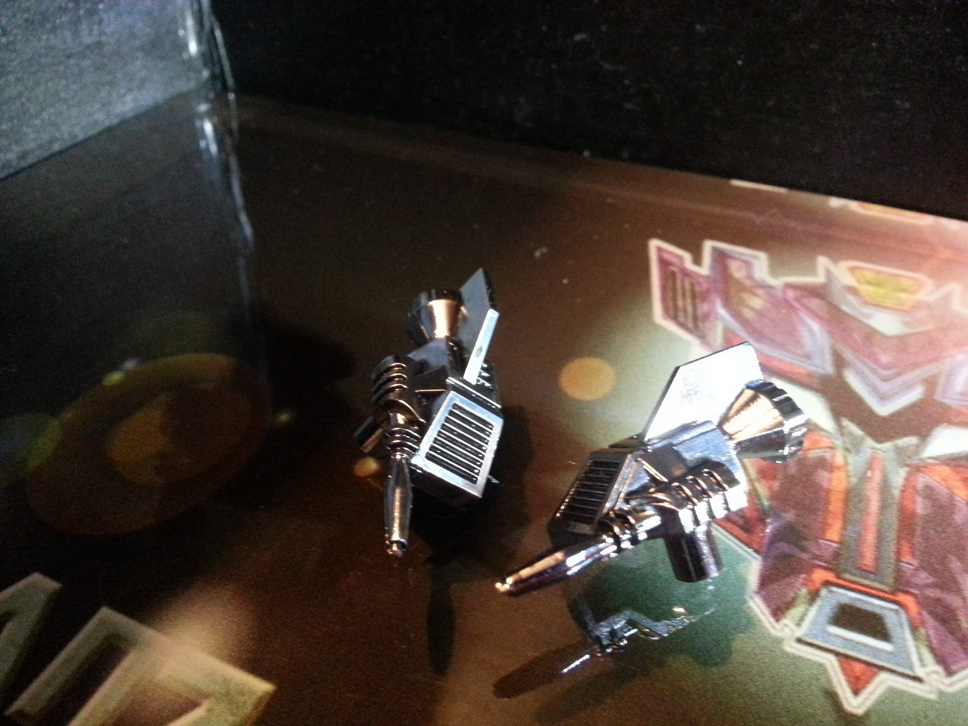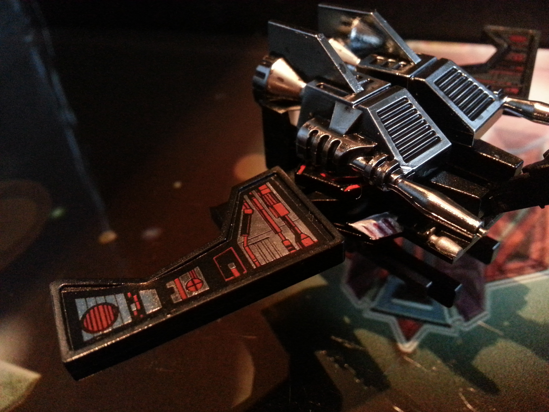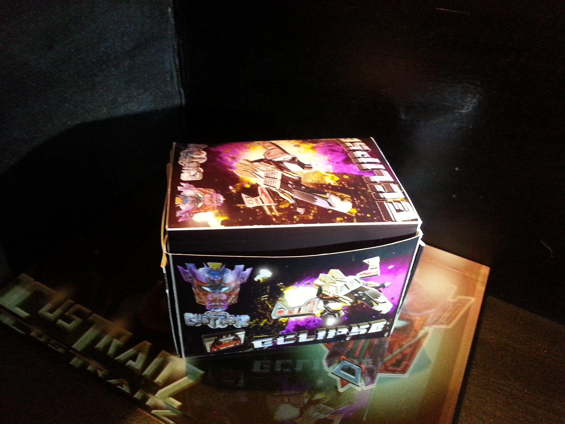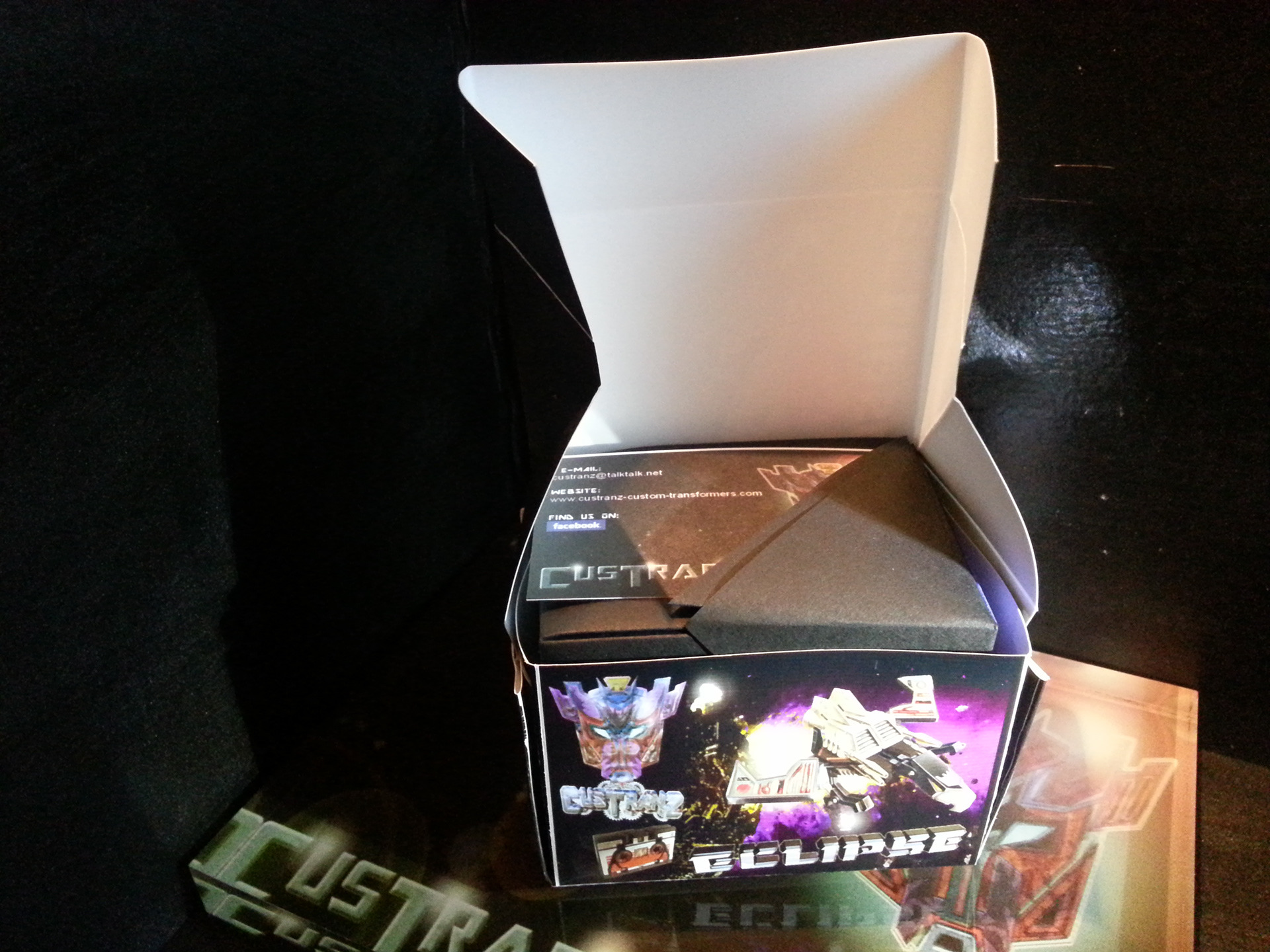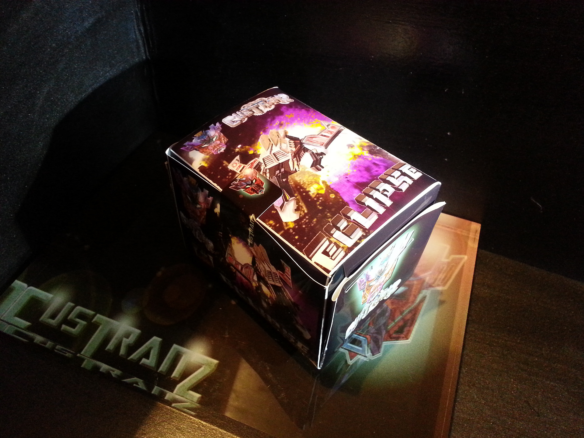 Eclipse specialises in deep space sabotage, targeting satellites and other communication terminals in orbit. Prefers to intercept the signal rather than send out miss-communication; creating a network blackout. Capable of soundless flight of up to 200mph. Disappears in low illumination. Utilises a pair of Light Disrupters that can cast any incandescence into complete darkness. Prefers to stay concealed and attack in obscure light. Likes to brag about own mission success to outshine others. Often regarded as a coward by fellow Decepticons.