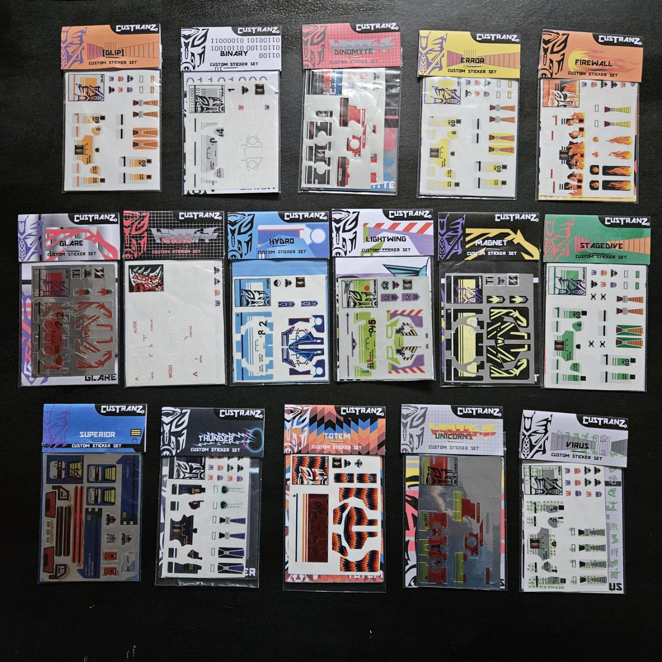 "Just got the Maelstrom sticker set today, and after seeing the stickers I couldn't wait for the gold Laserbeak I ordered specifically for this project. So I busted open my Linkin Park Soundwave set and spent 45 minutes to an hour cleaning and then applying the stickers. The stickers are cut better than some official stickers and the material is strong and flexible. Great set from both a design and quality stand point. I'm now on a mission to find the right cassette for the Sunburst set. You said you had upgrades to the stickers in the works and I honestly don't know what you could upgrade."